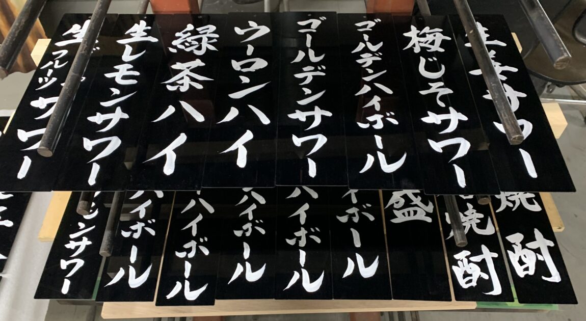 メニュー札の仕事は沢山入りますが、下書きなしの手書きメニュー札は珍しいです! 一発書きのものや、書き直せるものさまざまですが勢いがあって雰囲気が出せます✨ ふかや花園プレミアムアウトレット 『ひょう六亭』 ルクア大阪 『 … 続きを読む 手書きメニュー札